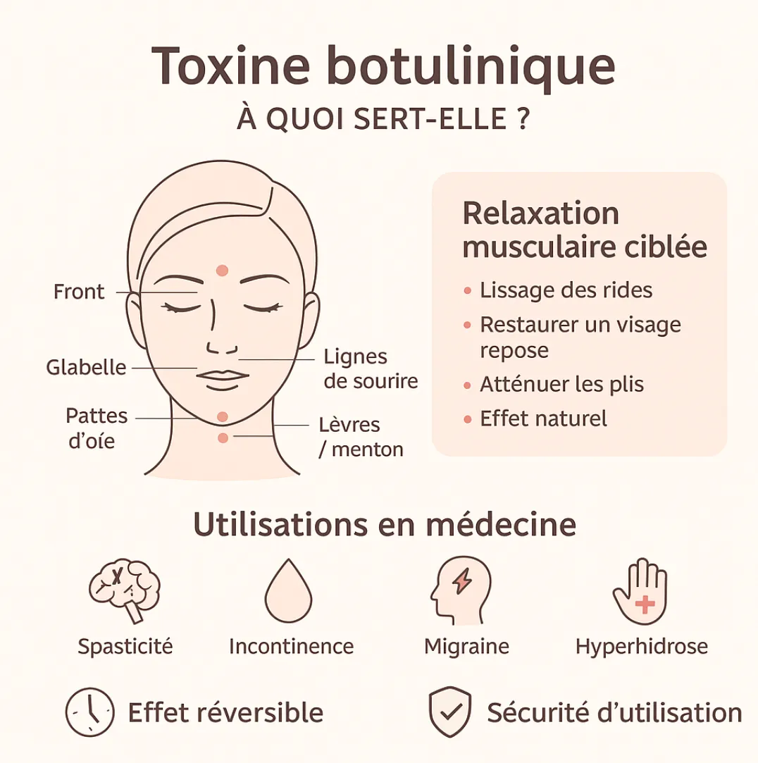 L’utilisation de la toxine botulinique ou toxine botulinique de type A (plus connue sous les noms commerciaux Botox®, Dysport®, Azzalure®, Xeomin®, etc.) en médecine s’est largement développée au cours des dernières décennies — bien au-delà de la médecine esthétique.